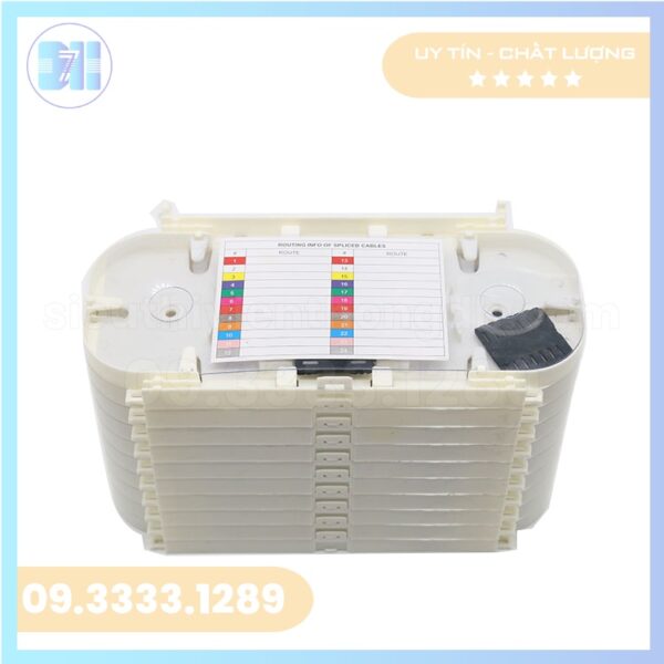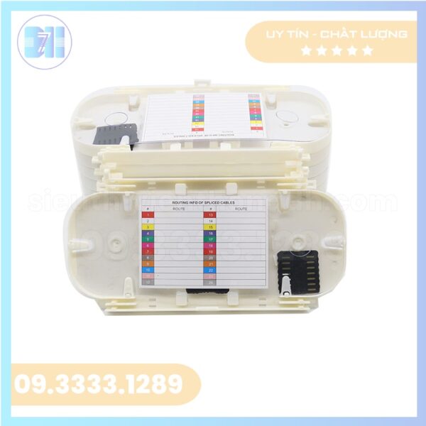Cấu tạo: Nhựa ABS chất lượng cao, Màu sắc: Trắng, Kích thước: 230x120x20mm, Dung lượng 12 sợi quang cho mỗi khay, Bảo vệ mối hàn quang và quản lý các dây Pigtail, Dễ dàng lắp đặt và sử dụng